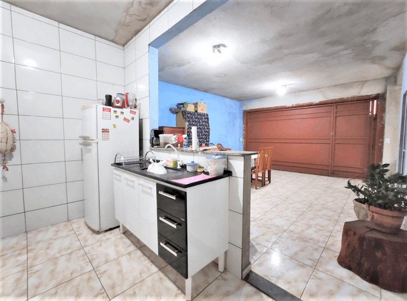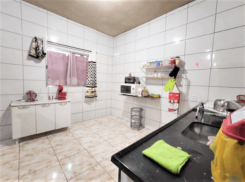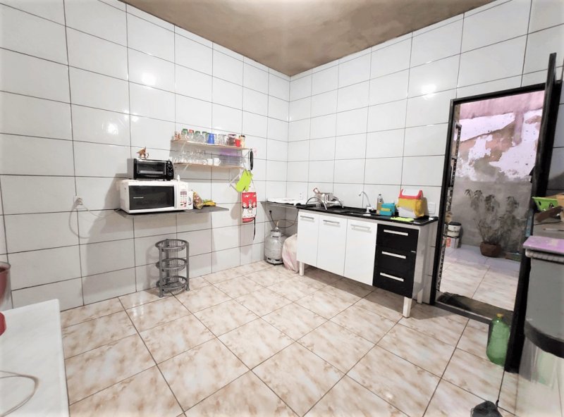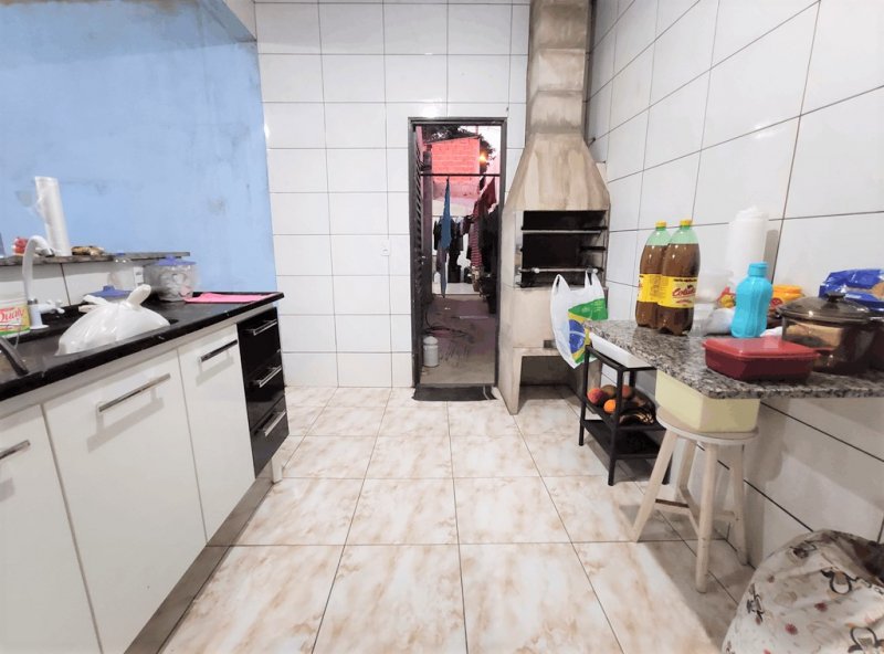 Sala ampla, cozinha americana, área de serviço com corredor lateral, espaço gourmet com armários, churrasqueira e banheiro, garagem para 2 veículos.