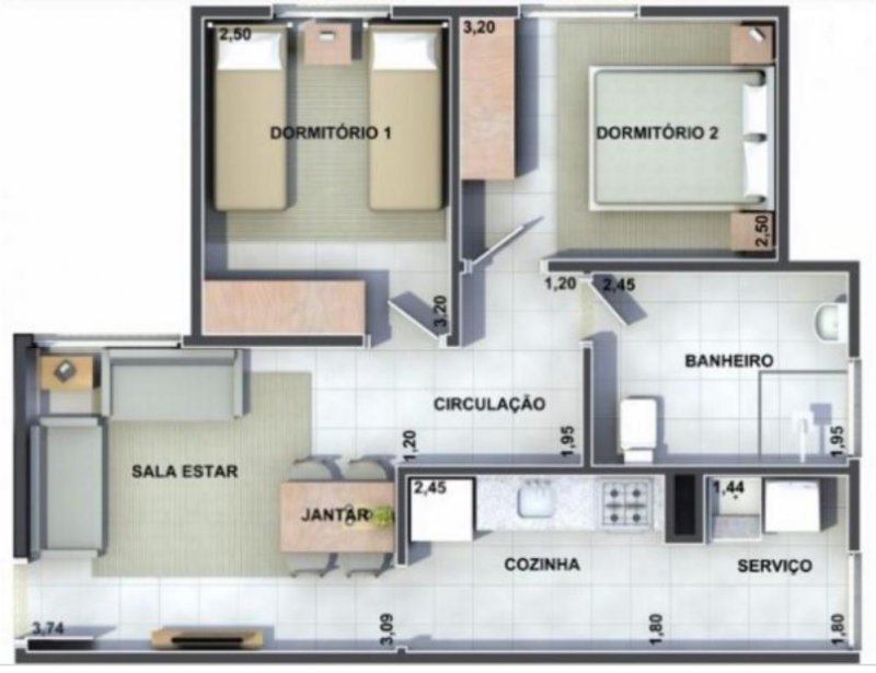 - 2 dormitórios