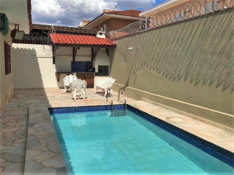 4 dormitórios, sendo 1 suíte com banheira, escritório, sala de TV reversível, sala de estar e de jantar, lavabo, cozinha, área de serviço, quarto de serviço com banheiro, área com churrasqueira, piscina, ventiladores de teto e ares-condicionados, cerca elétrica, câmeras de segurança e 4 vagas de garagem.