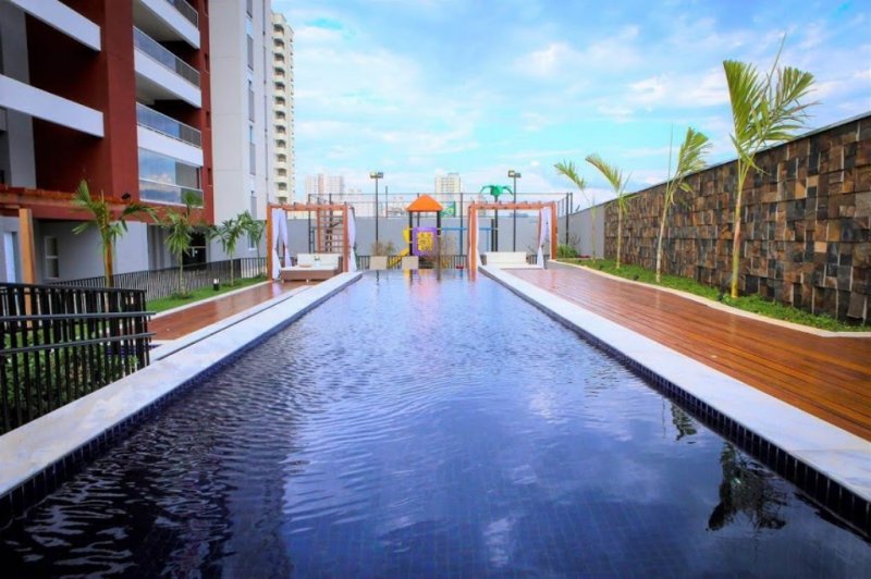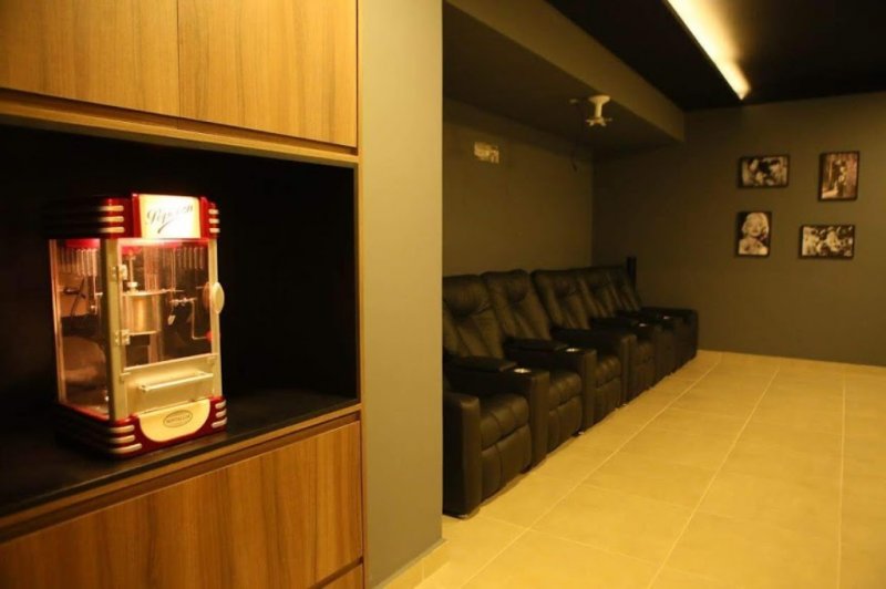 Belíssima área de lazer com academia, sala cinema, sala office, pet care, brinquedoteca, playground, salão de festas, mini quadra poliesportiva, living com área gourmet, sauna e piscina.