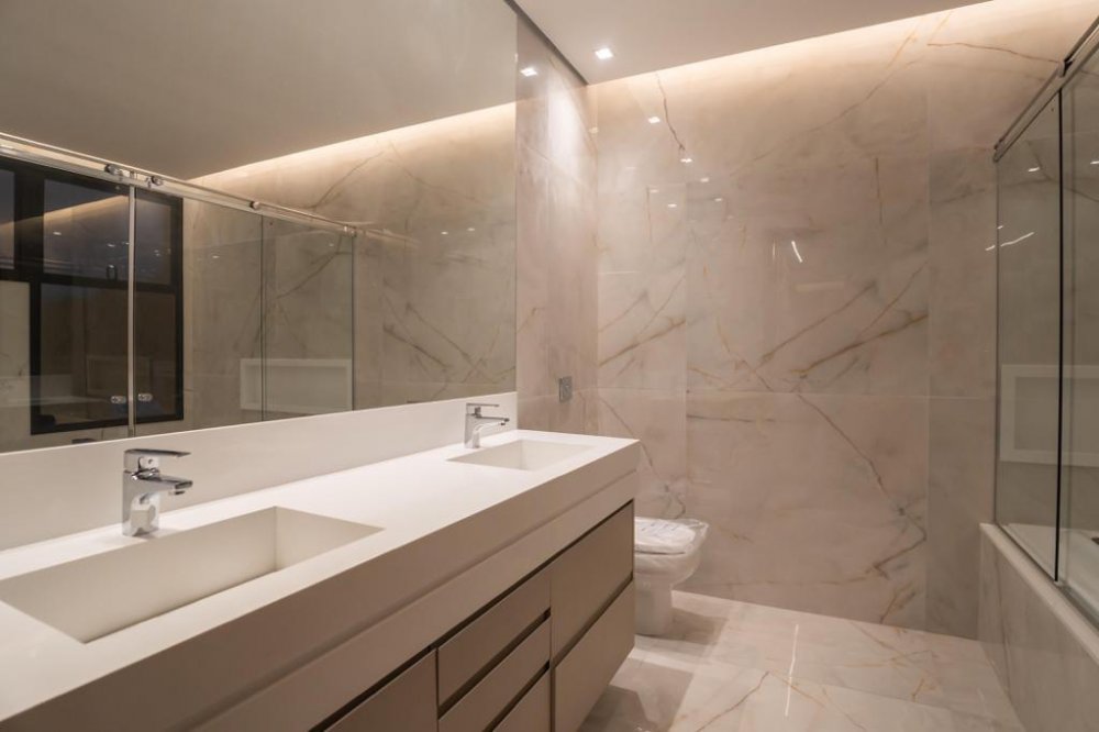 - 3 suites com closet, sendo a master com 2 chuveiros e 2 cubas e banheira